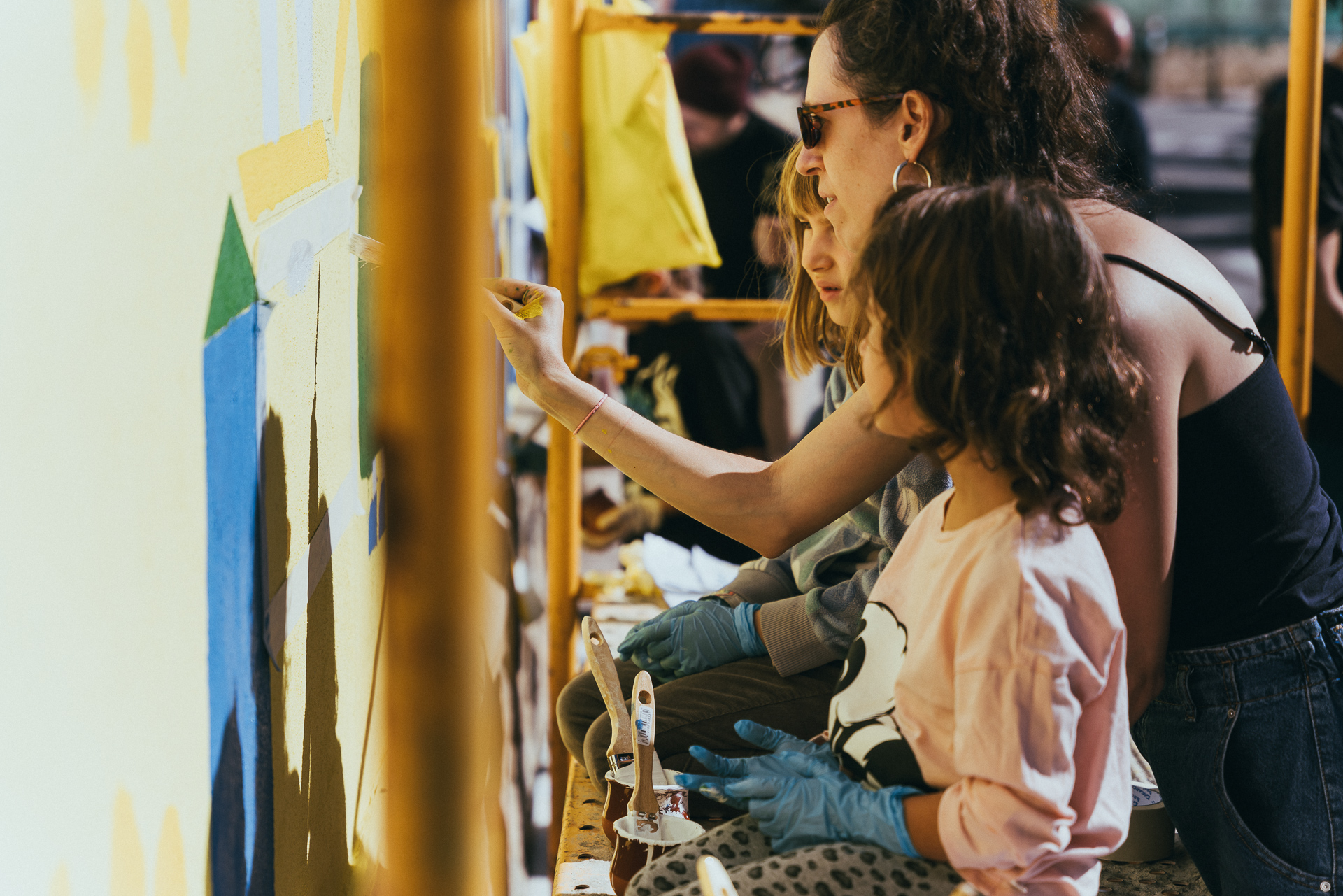 El sábado, nos unimos, compartiendo risas, alegría y conocimientos. Niños y niñas, familias y muchos amigos pintamos un mural colectivo en el exterior del colegio, contando los primeros pasos de la Comunidad Energética. Ese mural se había diseñado días antes días antes por niños, niñas y vecinos, que se habían juntado para pensar cómo representar lo que estamos haciendo para comenzar la Comunidad Energética; juntarnos, aprender sobre energía, instalar paneles solares, ¡y debatir mucho!