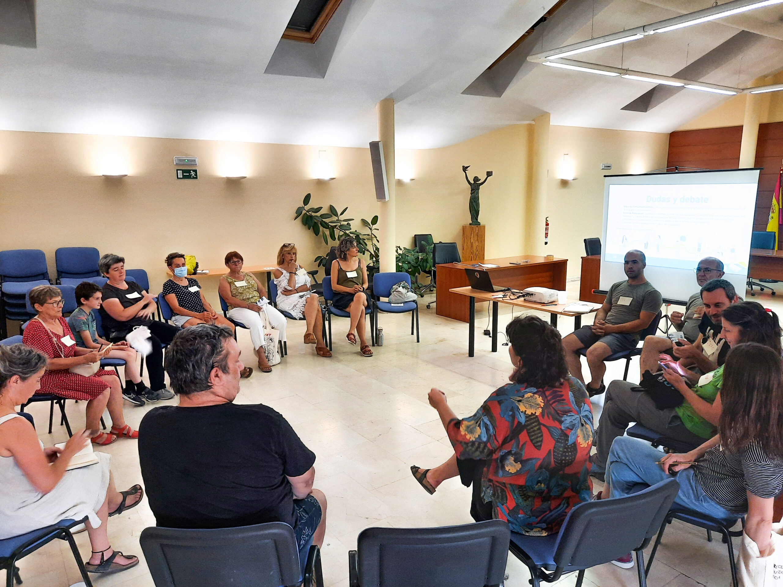 En el tercer taller participativo de vecinos y vecinas, estuvimos comentando la importancia de hacer una asociación para poder arrancar con la Comunidad Semilla, que será la primera fase de la Comunidad Energética. Esta fase consistirá en ceder la energía de los paneles solares que está instalando el Ayuntamiento en el polideportivo, de manera gratuita, a las familias en situación de vulnerabilidad energética, y a un precio reducido a otras familias del pueblo. Las personas que conformen la Asociación tendrán que decidir cómo y entre quiénes se cede la energía a familias no vulnerables, y cómo se va a organizar esta Comunidad. El Ayuntamiento nos contó que está trabajando con Servicios Sociales de la Mancomunidad para identificar, contactar e invitar a los hogares que más dificultades tienen para afrontar los precios de la luz.