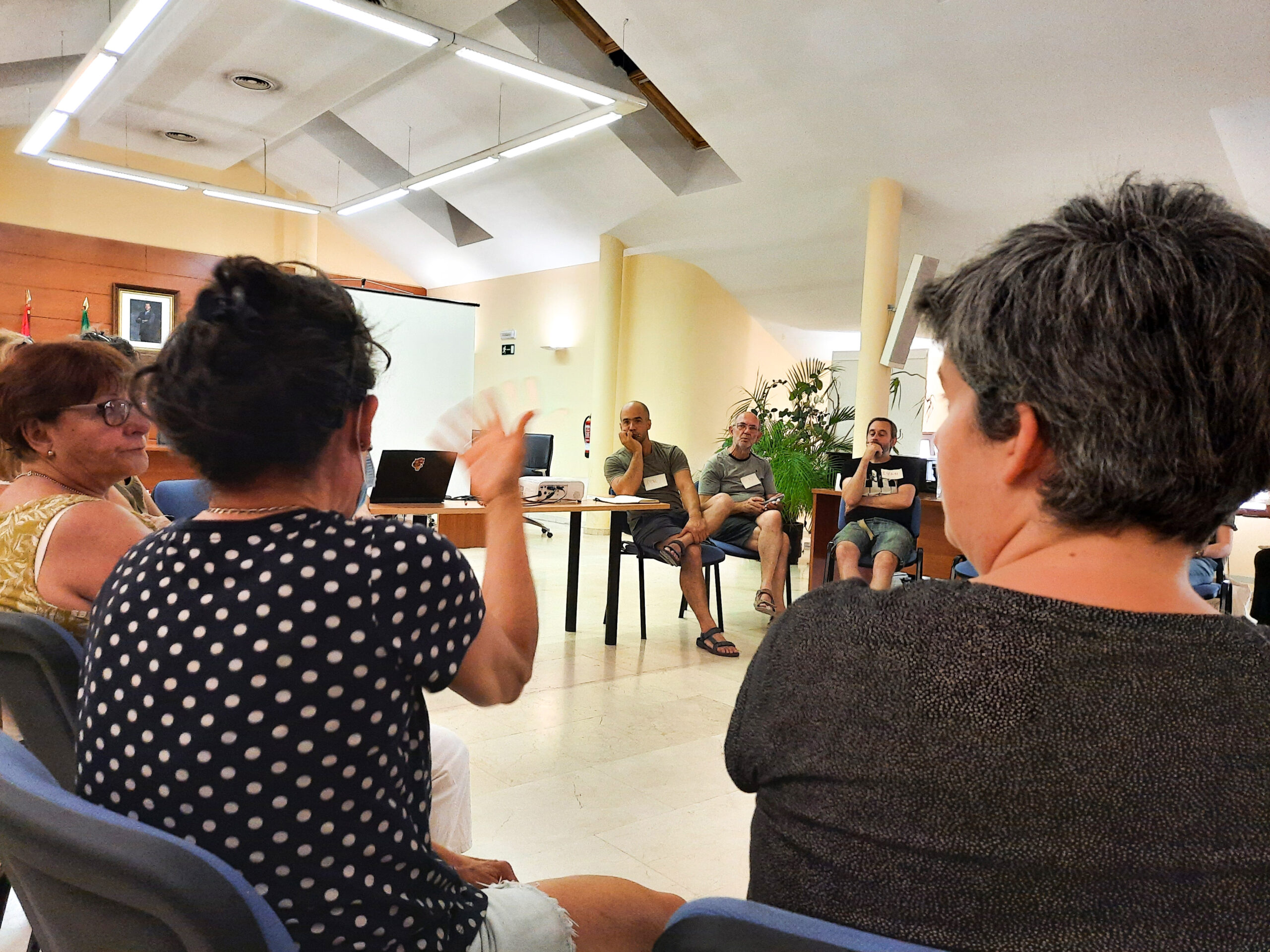 También tuvimos un debate muy interesante con ideas y dudas sobre cómo repartir la energía (a qué precios, entre quiénes, a qué personas priorizar). Algunas de las propuestas que surgieron de criterios para la cesión de energía a familias no vulnerables fueron: la edad (favoreciendo a la juventud), el ahorro energético (priorizando a quienes son más eficientes), los hogares que no tengan paneles solares instalados, criterios sociales (hogares algo vulnerables, con cierta dificultad de pagar los precios de la luz). Surgió también la propuesta de ceder toda la energía de los paneles solares que instala el Ayuntamiento a todos los equipamientos municipales, y que pueda eso revertir en una reducción de los impuestos de todos y todas. Y también se propuso que la energía que reciban los hogares vulnerables tenga un precio, aunque sea muy bajo. Sin embargo, el Ayuntamiento aclaró que en principio, en la fase de Comunidad Semilla, y con la energía generada por los paneles solares del Ayuntamiento, la energía se cedería gratis a estas familias vulnerables.