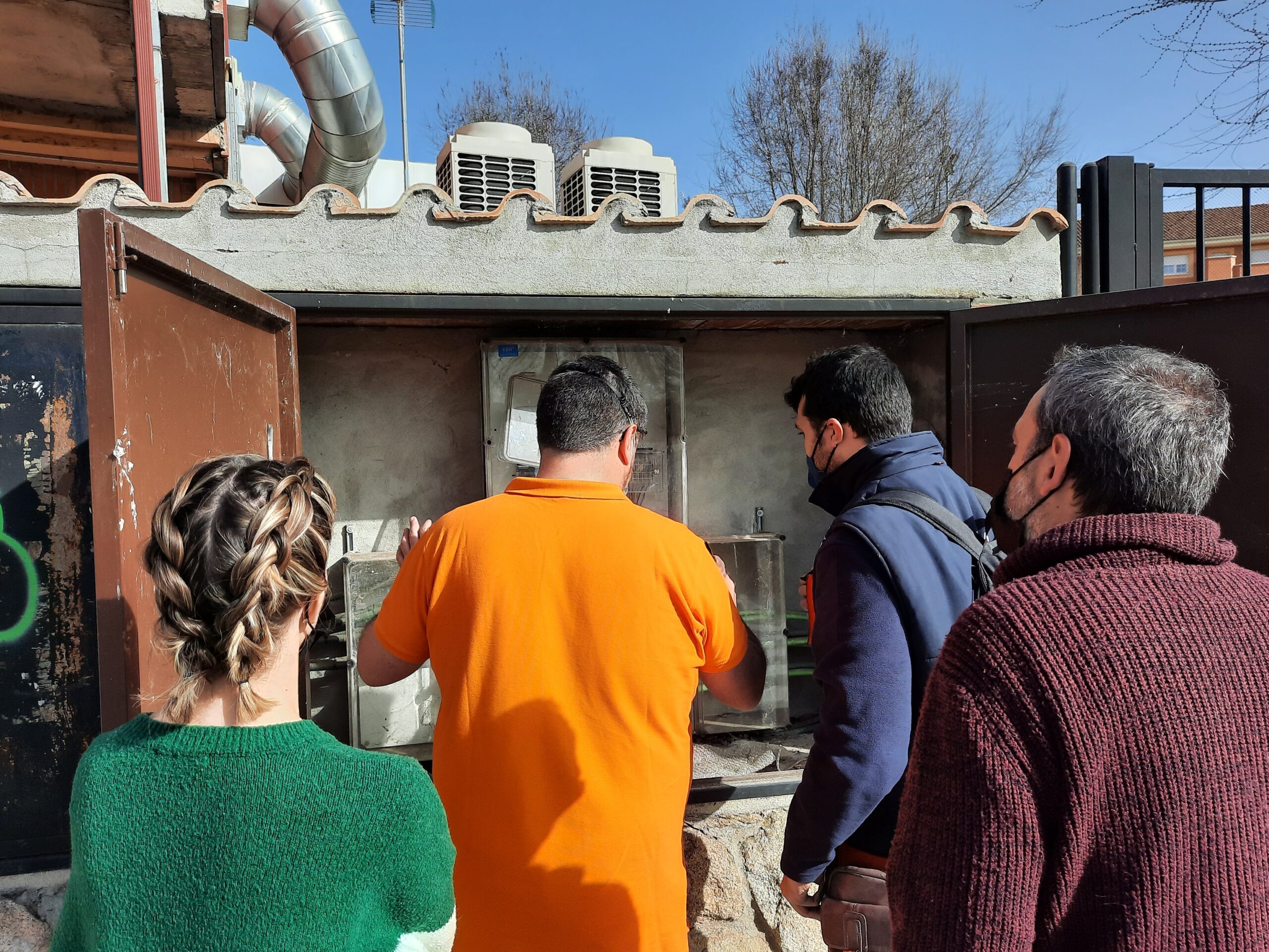 Después de explorar el polideportivo, nos dirigimos a la acometida eléctrica situada en la calle del polideportivo. Fue un momento crucial, ya que comprendimos la importancia de conectar nuestra planta fotovoltaica a la red eléctrica local. Esta conexión nos permitiría compartir la energía generada con toda la comunidad, extendiendo los beneficios del autoconsumo compartido a un mayor número de personas.
